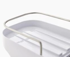 - Angled easy-load pocket for quick and easy storage and hanging hooks for sponges and razors