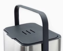 - Storage space beneath the inner bucket to store a pack of Joseph Joseph IW2 custom-fit, compostable bin liners.