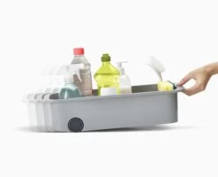 - Large main compartment is perfect for bottles, aerosols and spray cleaners