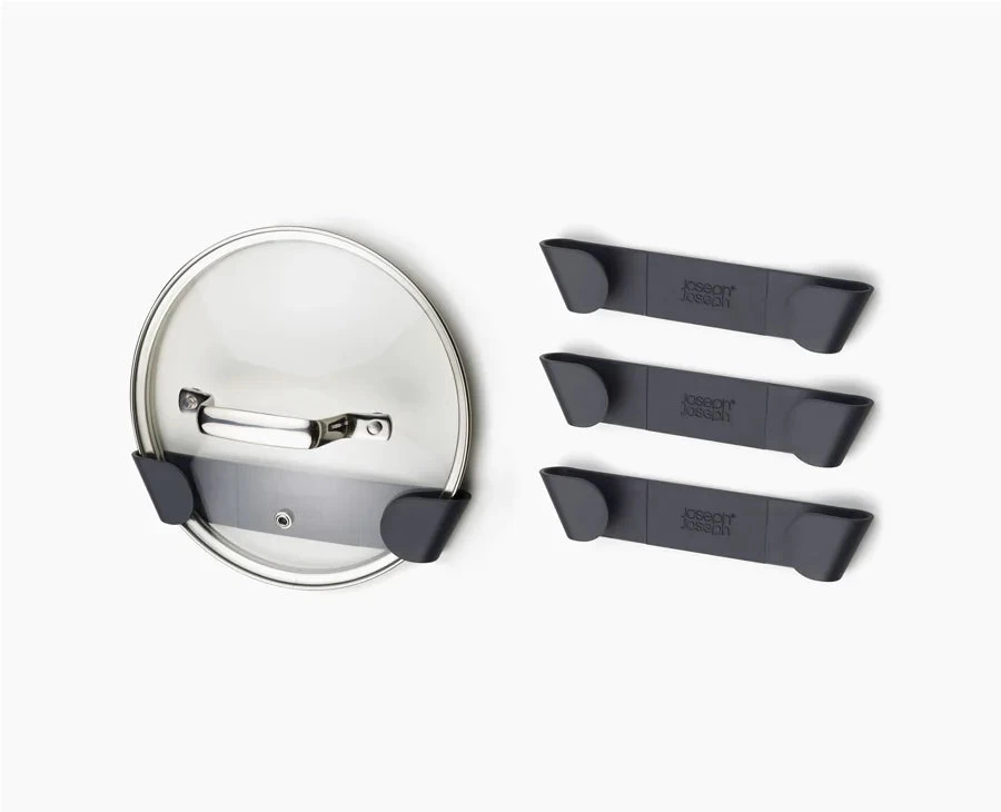 Each individual holder in this set of 4 pan lid holders can be mounted onto the inside of a cupboard door to keep your kitchen organised and make finding the lid you need easy.