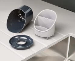 This handy cutlery drainer has tiered compartments to help you separate out different items and an integrated saucer to collect any excess water.