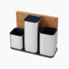 The unique design of this serving bowl is actually two bowls stacked on top of each other, with the lower one curved outwards in three places creating chutes down which food waste can be dropped.