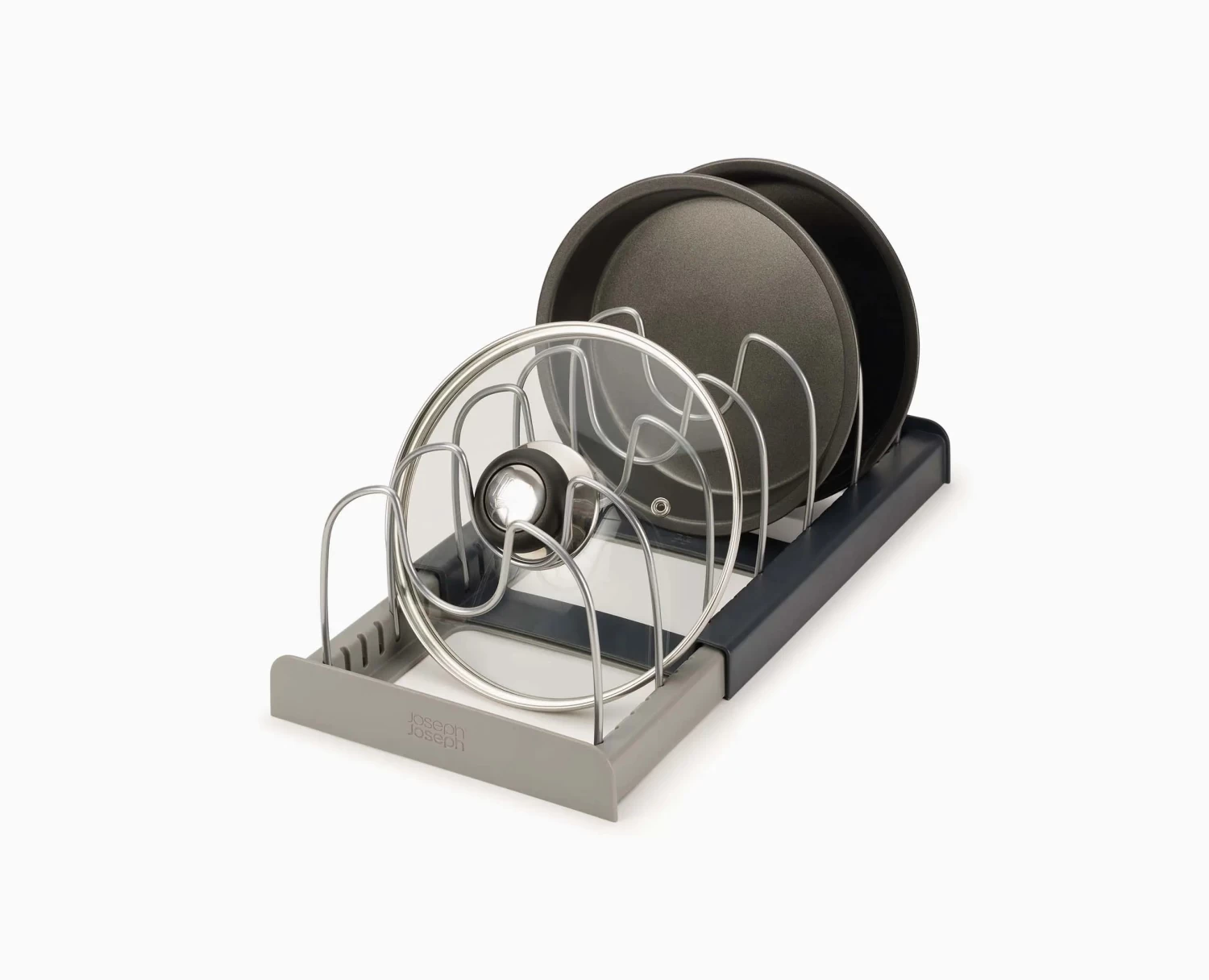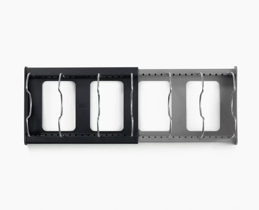 - Includes 7 adjustable non-scratch wire dividers with pan handle slots