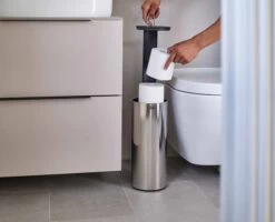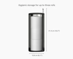 - Holds up to three spare toilet rolls, keeping them concealed.
