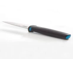 - Weighted handles and integrated knife rests prevent blades from touching the work surface when placed down