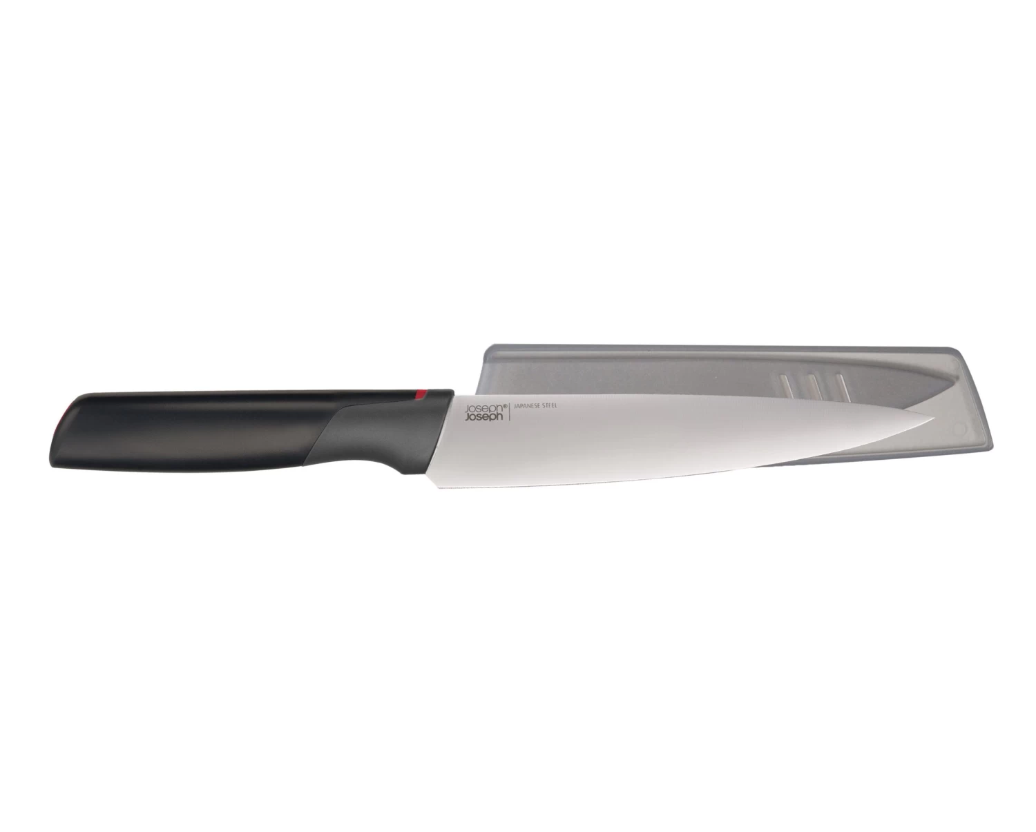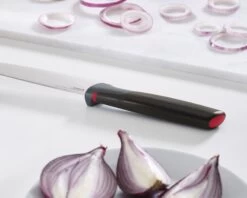 - Weighted handle and integrated knife rest prevents blade from touching the work surface when placed down