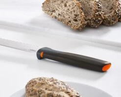 This long, serrated knife makes it easy to cut bread or rolls with clean slices and can also be used for other soft foods such as tomatoes.