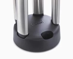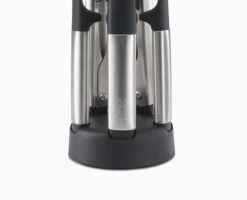 - Weighted steel handles and integrated tool rests prevent utensil heads from touching the work surface when placed down