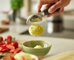 - For the smoothest, most efficient scooping, it comes with a tough zinc alloy head that cuts through hard ice-cream and sorbet with ease.