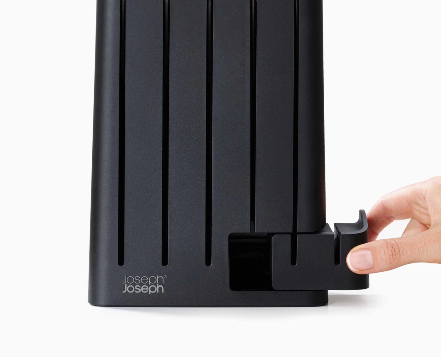 This stylish set comprises five knives with Japanese stainless-steel blades and ergonomic handles plus a smart, slimline knife block that features easy-access knife slots and a removable, two-stage ceramic sharpener in the base.