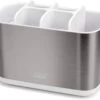 Joseph Joseph Flex Toilet Brush With Storage Bay. Conventional toilet brushes hold dirt and liquid, making them messy and unhygienic to use and clean. Also their bristles can distort and wear, meaning they need to be replaced regularly. Flex! is an innovative toilet brush designed to solve all these problems. It features a flexible, D-shaped head that reaches all areas, even under the rim. It has widely spaced bristles that prevent dirt clogging, allowing liquid to drain quickly and minimising drips between cleaning and storing. Flex! Plus has the additional feature of a storage caddy integrated in the holder for keeping cleaning products or aerosols handy, but discreetly out of sight.