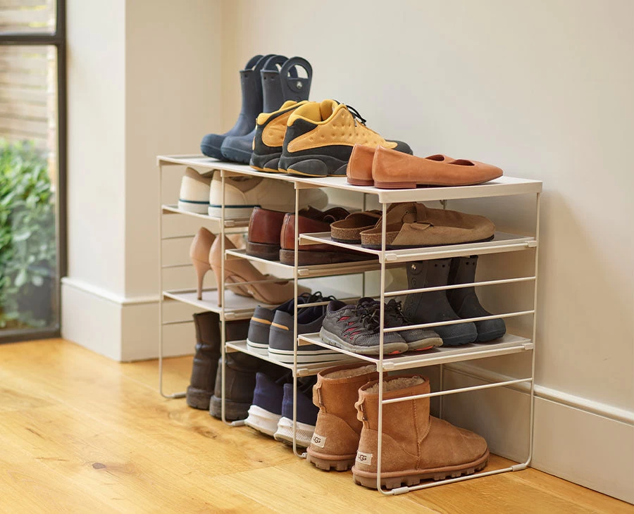- Stores up to twelve pairs of boots, trainers, or shoes.