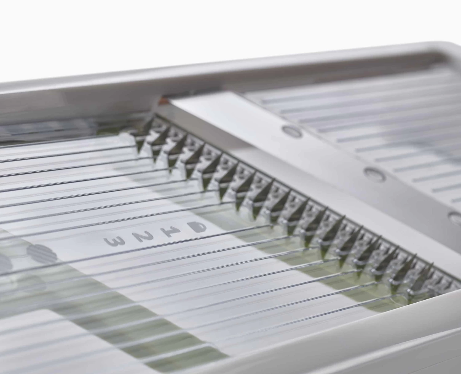 - Precision food grip protects fingers and features three styles of grip: Pinch grip for small items; Centre grip for round slices; Flat grip for longer slices