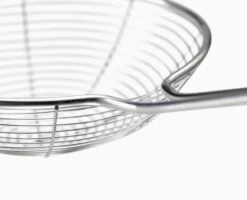 - Wire skimmer perfect for collecting and draining food from hot liquids