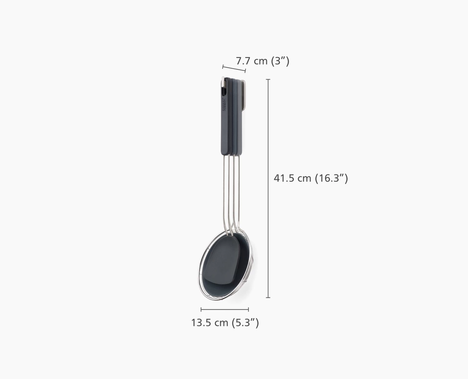 - Set includes silicone turner, silicone spoon and stainless-steel wire skimmer