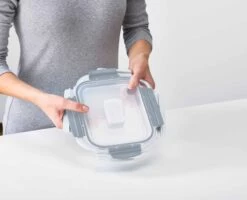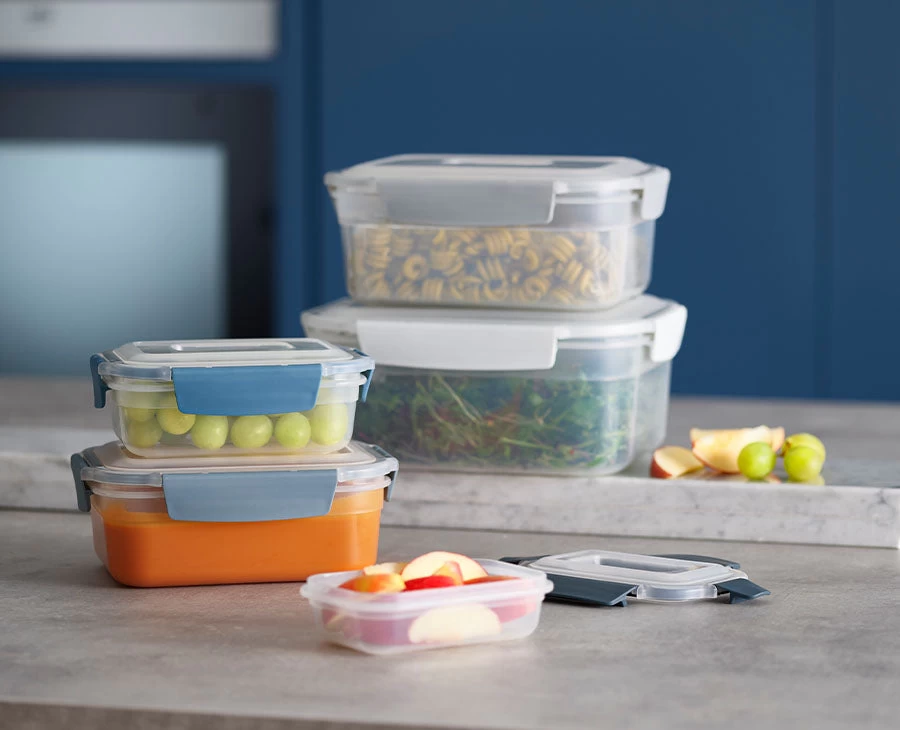 The unique design of these food storage containers means the bases nest neatly inside each other while the lids clip conveniently together for efficient, space-saving storage.