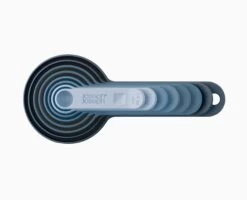 These measuring cup sets feature 8 different cup sizes ranging from ¼ tsp (1.25ml) up to 1 cup (250ml) but all stack neatly together to take up minimal room in your drawer or cupboard.