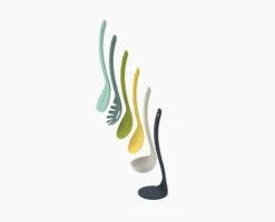 - Set includes: slotted spatula, spaghetti server, slotted spoon, solid spoon and ladle