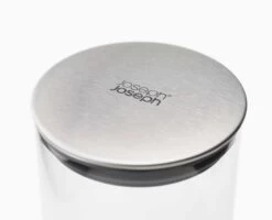 This smart glass storage container set features a clever stand that allows easy access to any jar, regardless of its position. The containers are made from glass with airtight stainless-steel lids.