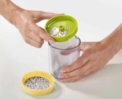 - Easy-to-use, self-aligning design keeps food straight as you twist the soft grip handle