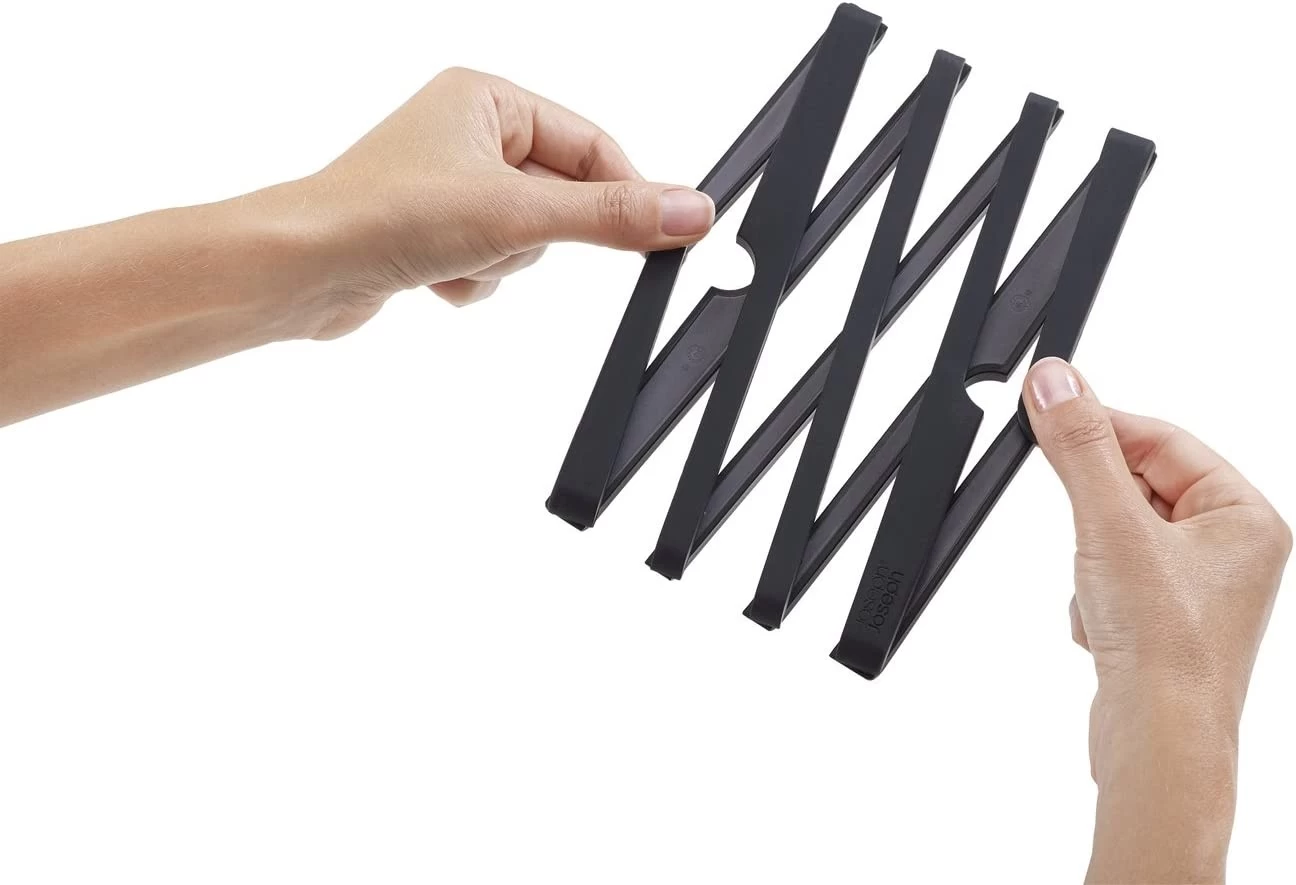 The unique design of the Joseph Joseph Pot Stand Stretch? is adjustable to provide space for more than one pan, or even a large casserole dish by easily expanding to the required size. After use, it folds neatly away for convenient storage. Made from a high-quality silicone-nylon composite, it is heat- resistant up to 270?C/520?F.