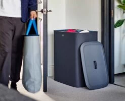 - Removable tote bags with handles makes carrying washing to the machine easy