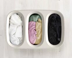 - Three 30-litre compartments allow for easy separation of fabrics, such as lights, darks and colours