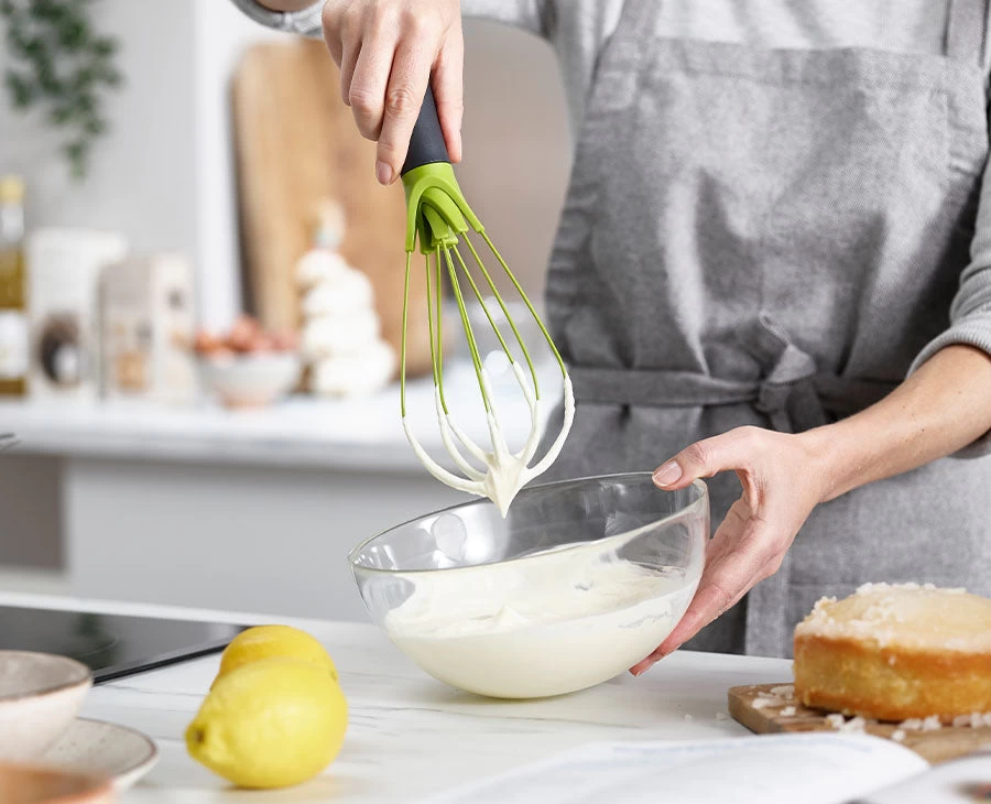 - Flat whisk for blending and balloon whisk for whipping